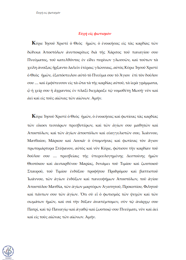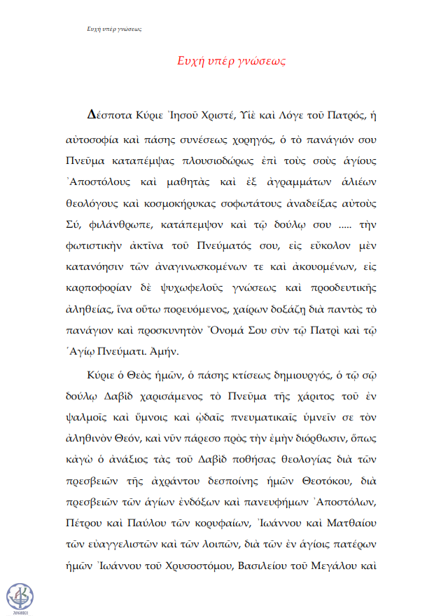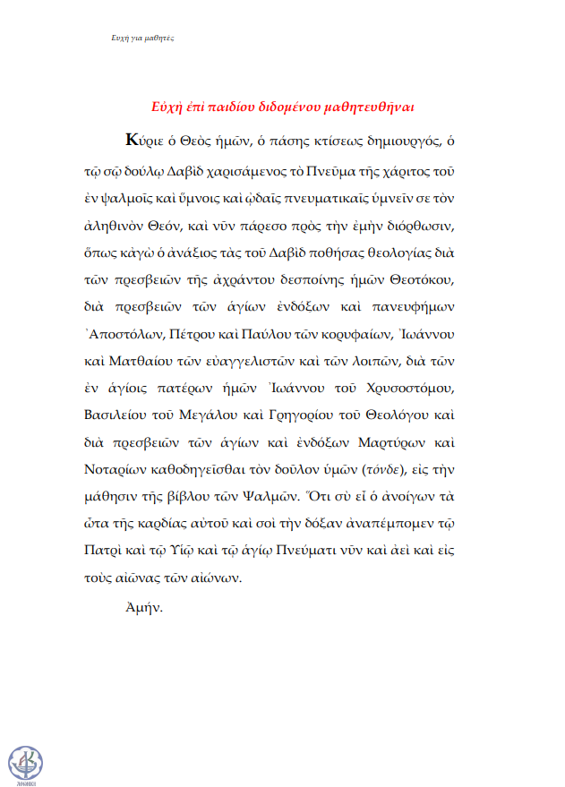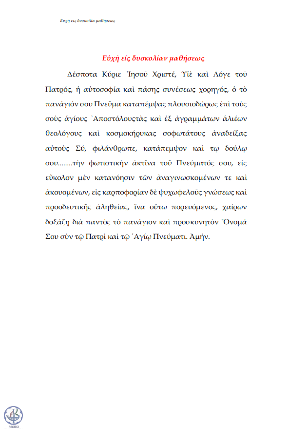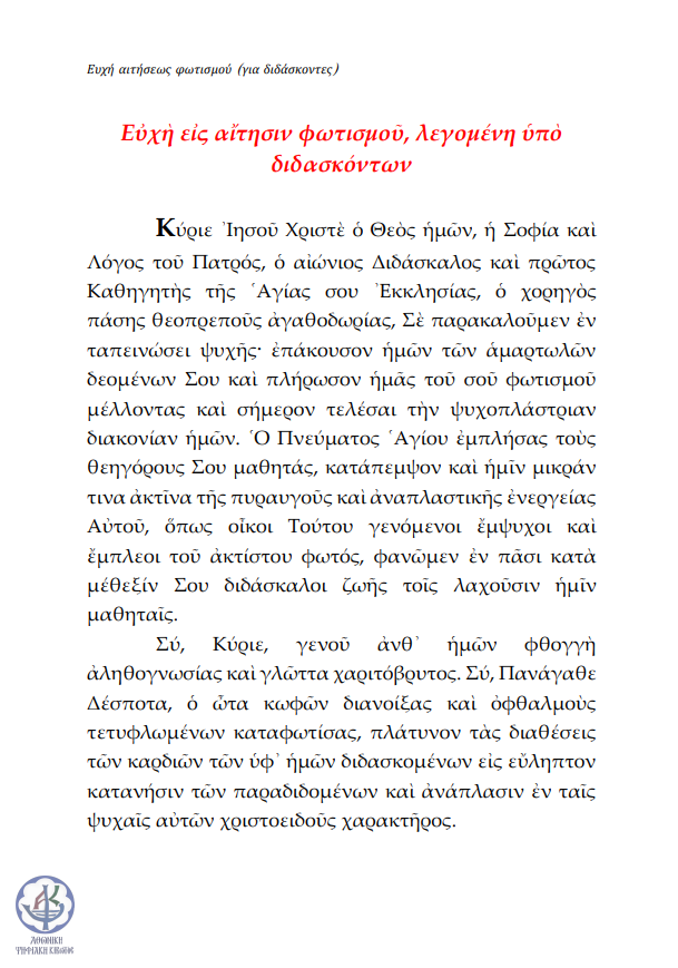 Ευχή αιτήσεως φωτισμού (για διδάσκοντες)