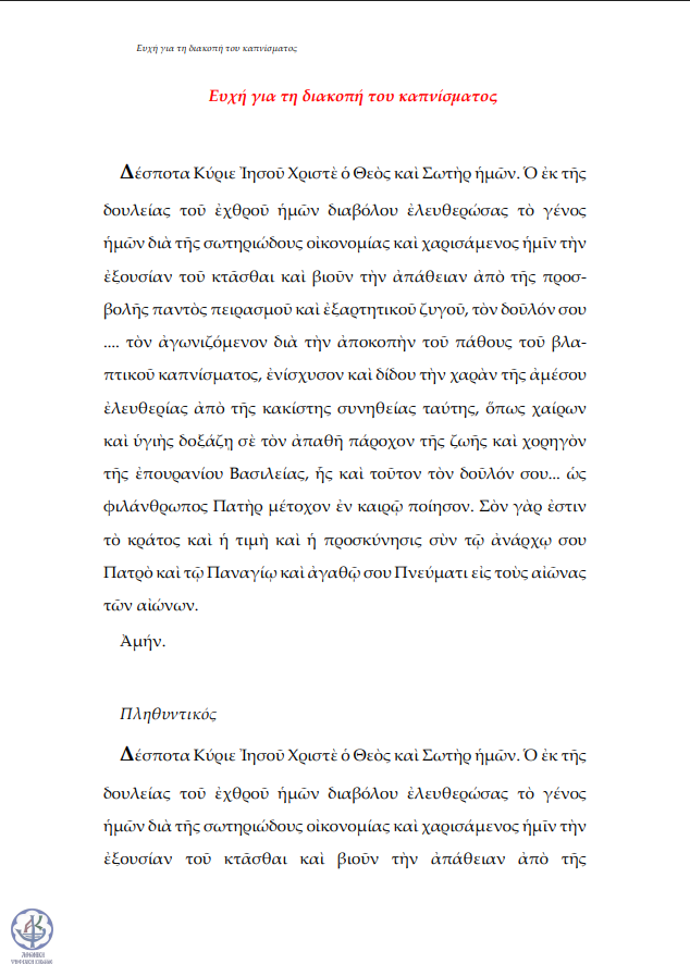 Ευχή για τη διακοπή του καπνίσματος