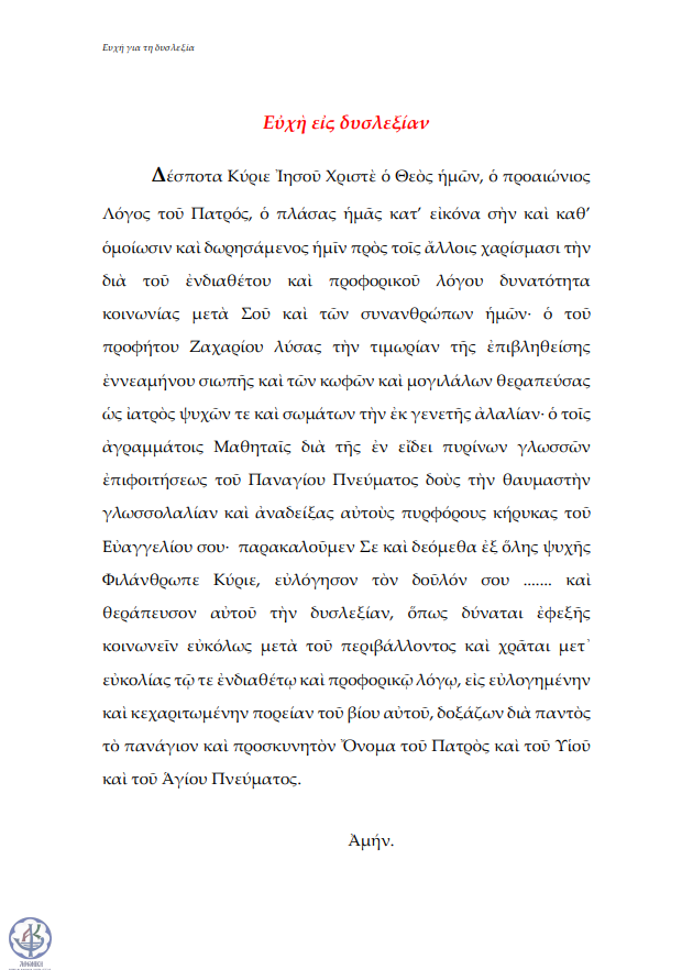 Ευχή για τη δυσλεξία