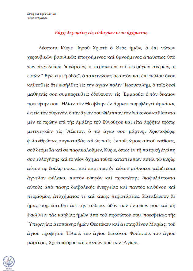 Ευχή για την ευλογία νέου οχήματος