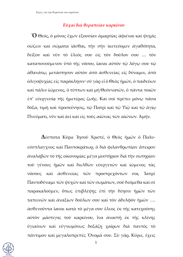 Ευχή για την θεραπεία του καρκίνου