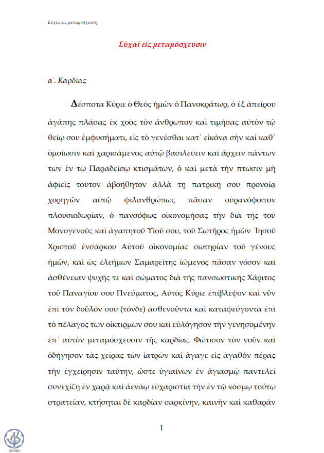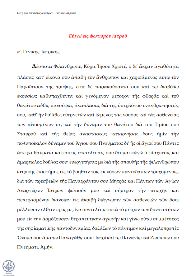 Ευχή για τον φωτισμό ιατρών (γενικής ιατρικής & χειρουργικής)