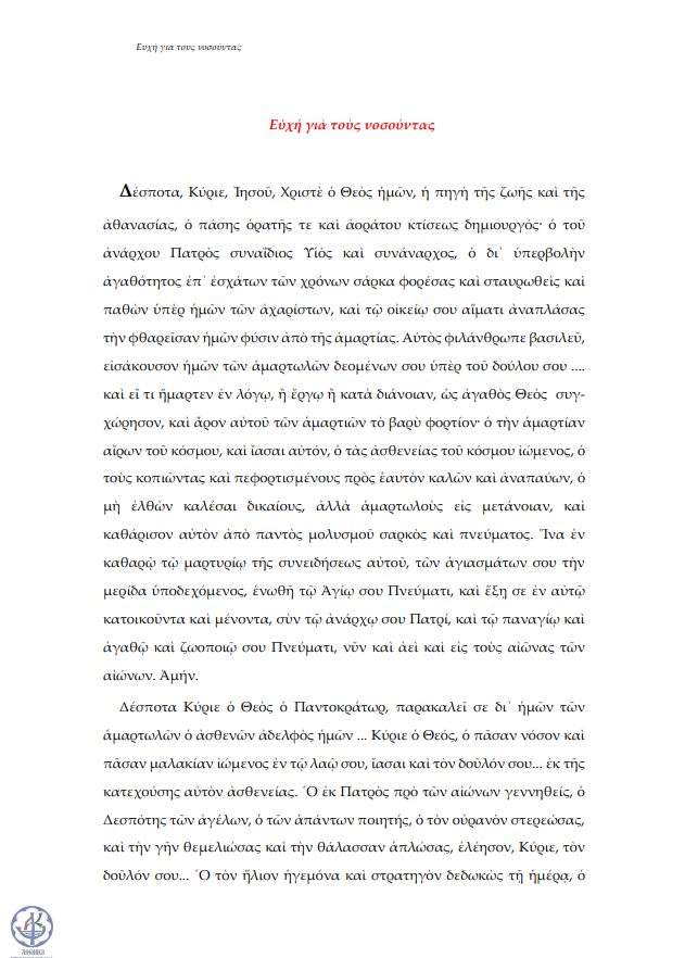 Ευχή για τους νοσούντας