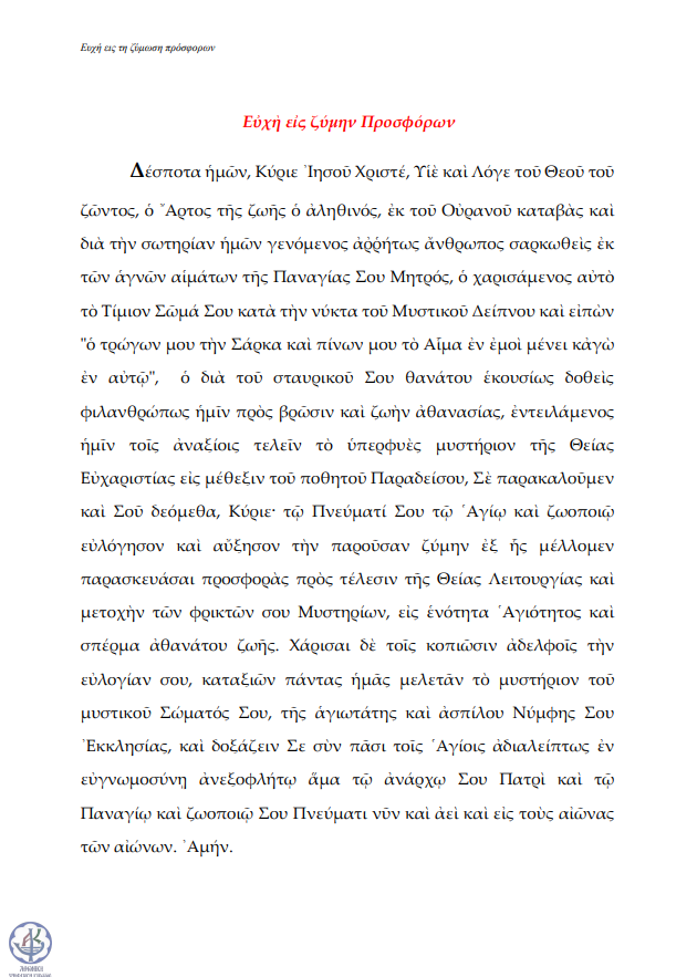Ευχή εις τη ζύμωση Προσφόρων