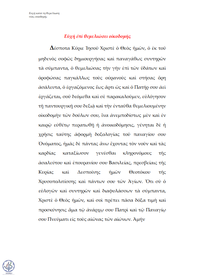 Ευχή κατά τη θεμελίωση νέας οικοδομής