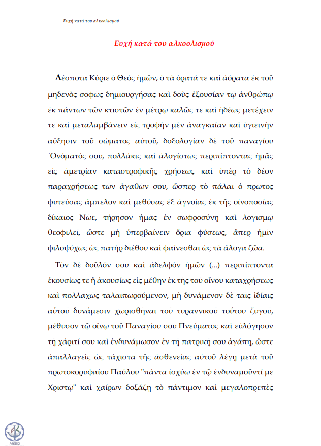 Ευχή κατά του αλκοολισμού