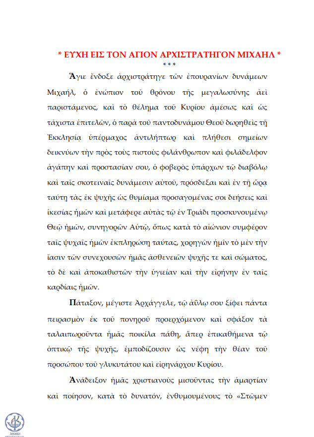 Ευχή στον Αρχάγγελο Μιχαήλ