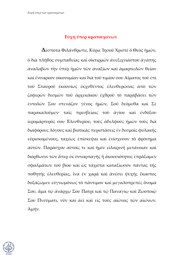 Ευχή υπέρ των κρατουμένων