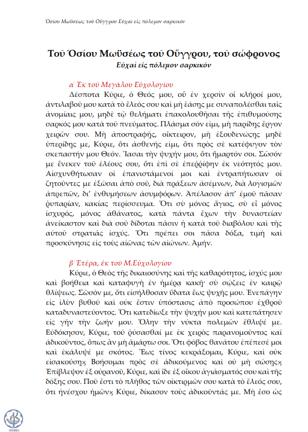 Οσίου Μωϋσέως του Ούγγρου Ευχή εις σαρκικόν πόλεμον