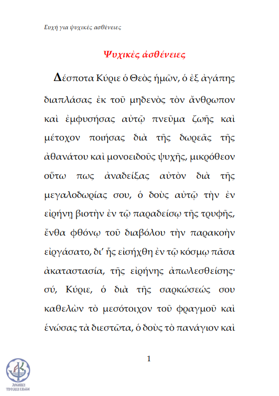 Ευχή για ψυχικές ασθένειες