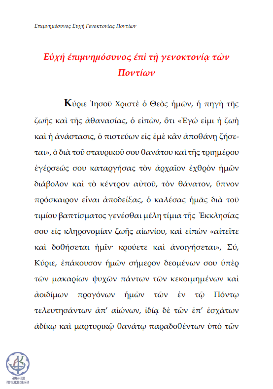 Επιμνημόσυνος Ευχή Γενοκτονίας Ποντίων
