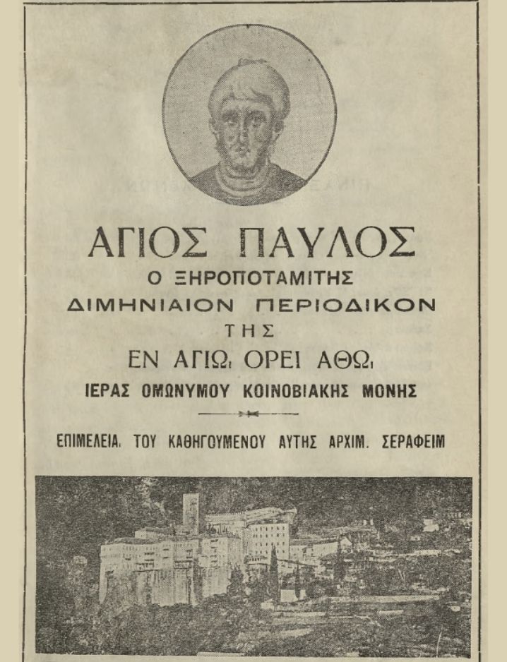 Μηνιαίο περιοδικό της εν Αγίω Όρει Ιεράς Κοινοβιακής Μονής Αγίου Παύλου, με επιμέλεια του Καθηγουμένου της μονής, Αρχιμ. Σεραφείμ (1886-1959). Εξεδόθη συνεχώς από το 1950 μέχρι το 1959, όταν απεβίωσε ο ηγούμενος Σεραφείμ, από τον εκδοτικό οίκο του Μ. Τριανταφύλλου στη Θεσσαλονίκη.